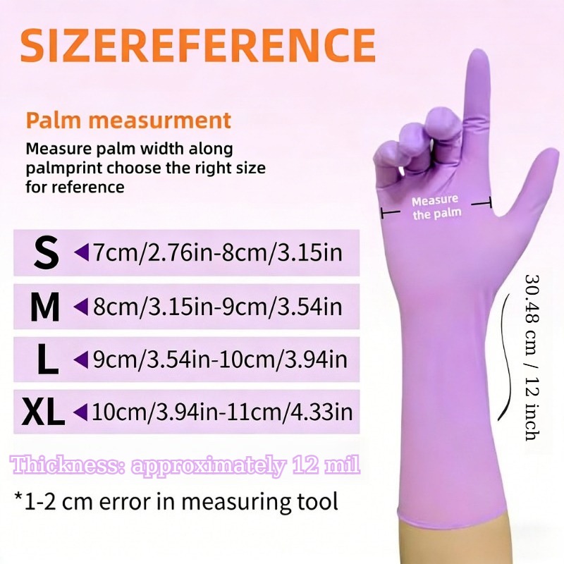 Purple 12-Inch Nitrile Gloves, Non-Slip Fingertips with Touchscreen, Powder-Free, Suitable for Kitchens And Bathrooms, Pet Bathing, Painting, Daily Cleaning, Holiday Gifts