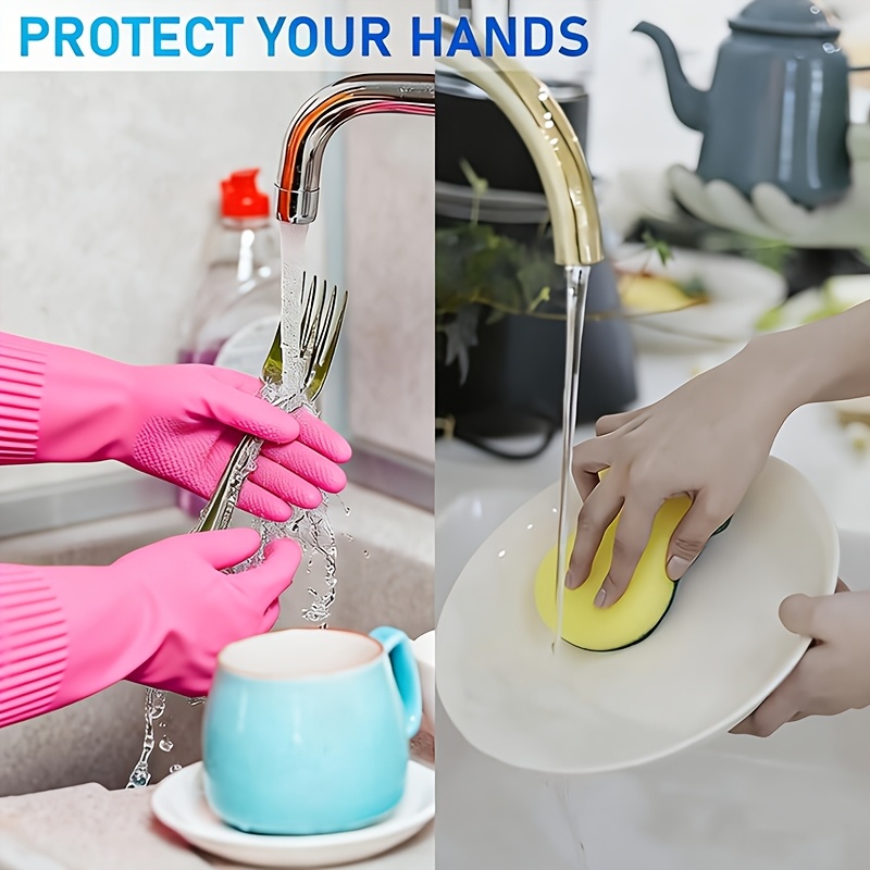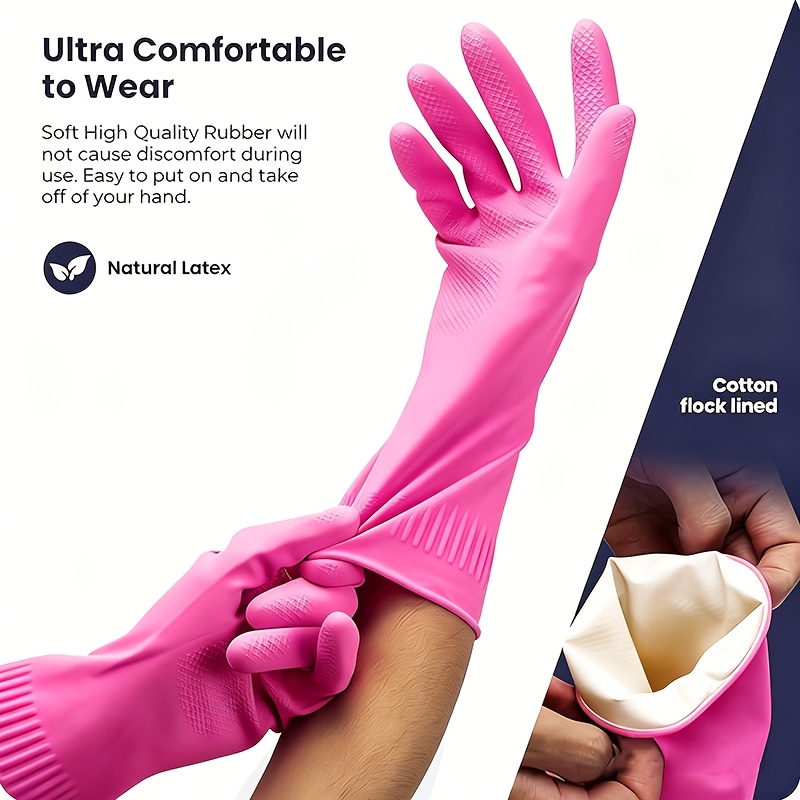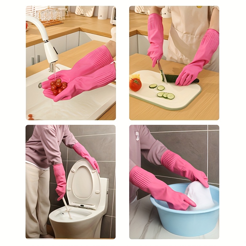 Reusable Latex Cleaning Gloves, 9 Pairs Pack, 14.96In\u002F38Cm Extended Long Cuff, Thickened Durable with Non-Slip Textured Palm, Household Gloves for Dishwashing Cleaning Kitchen