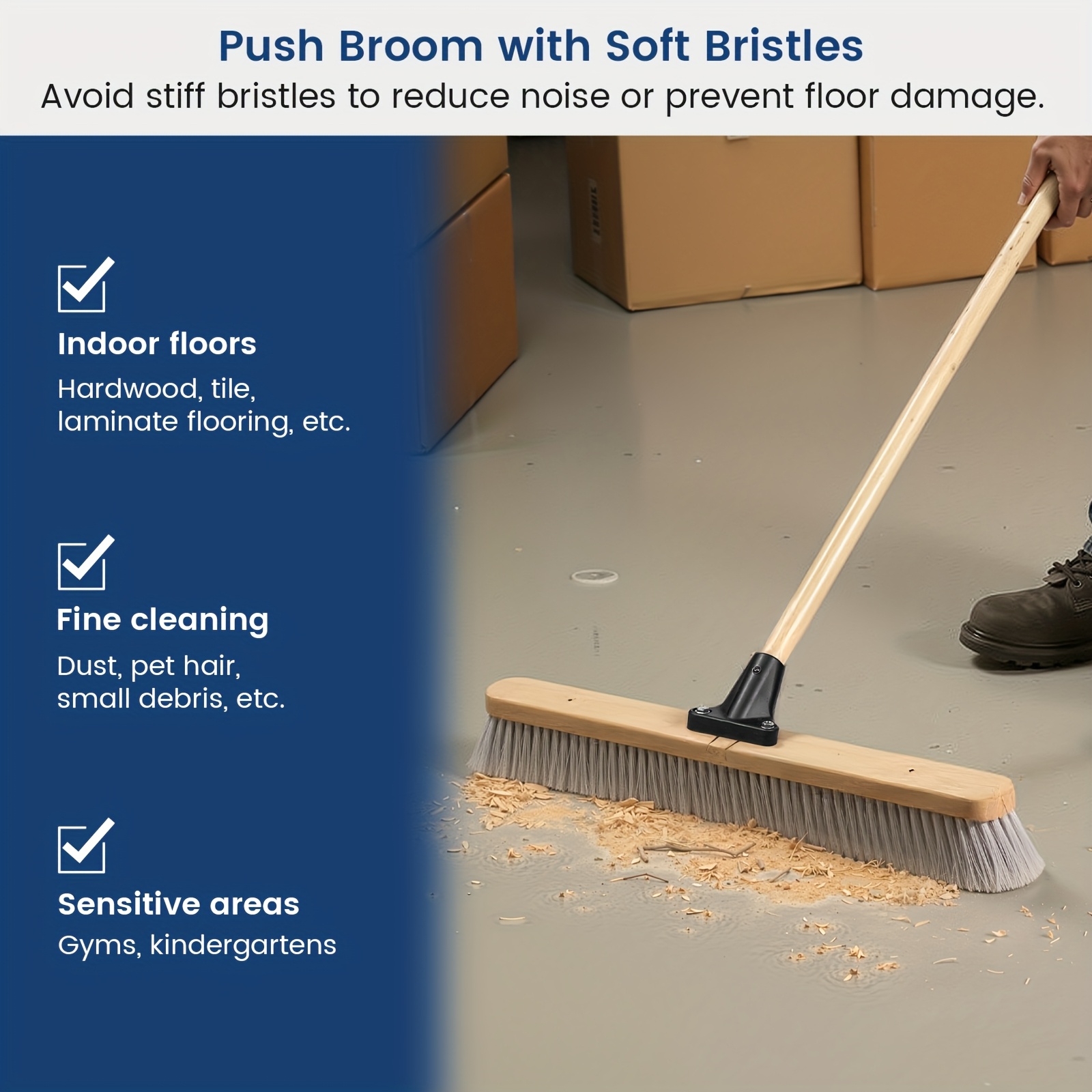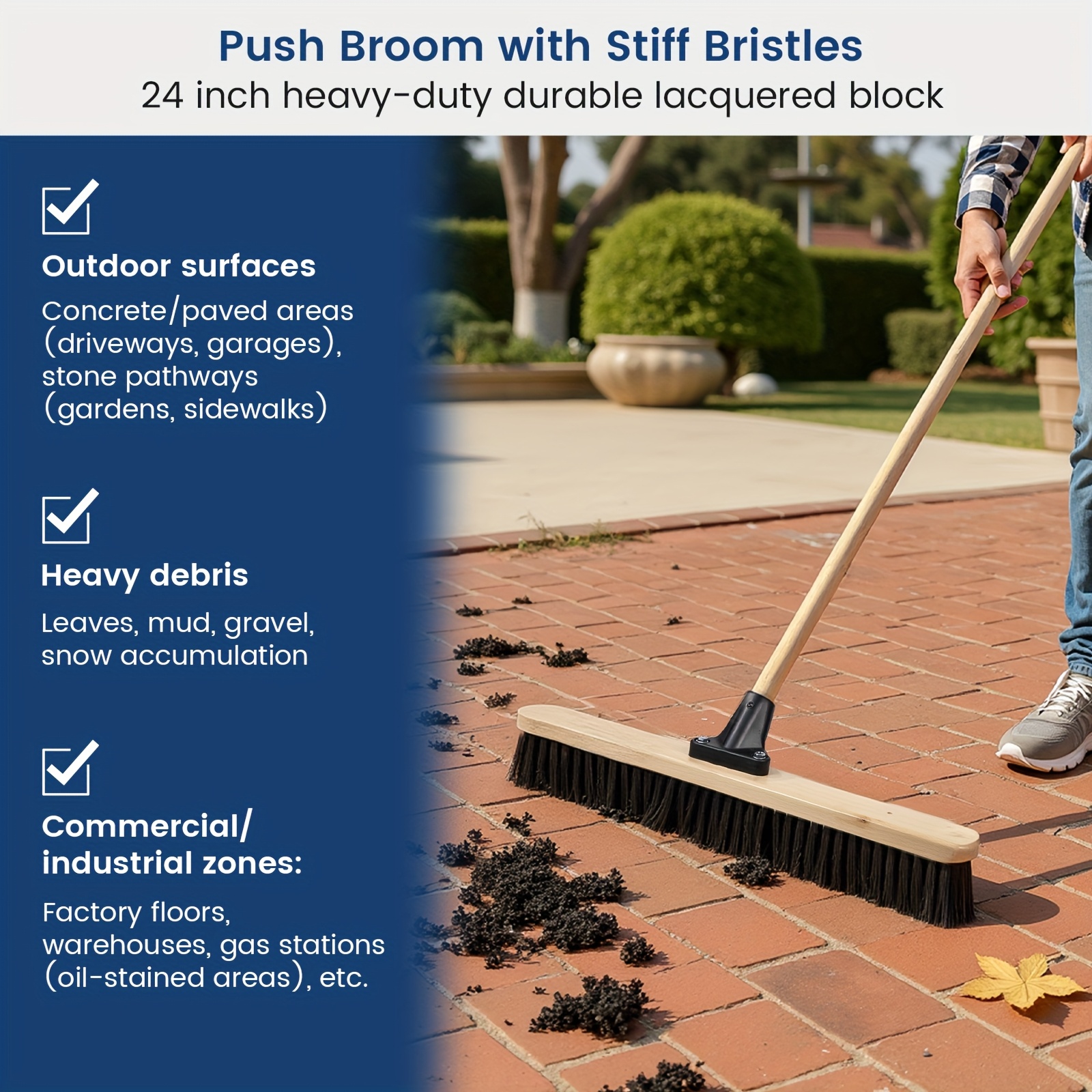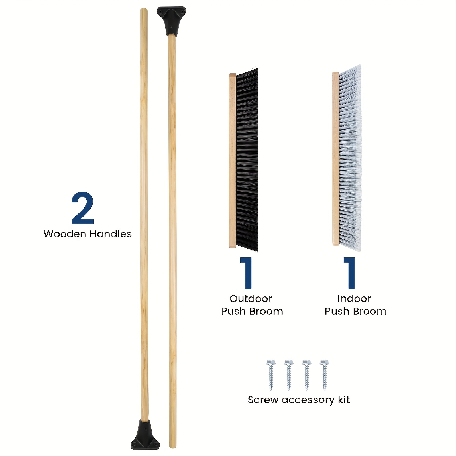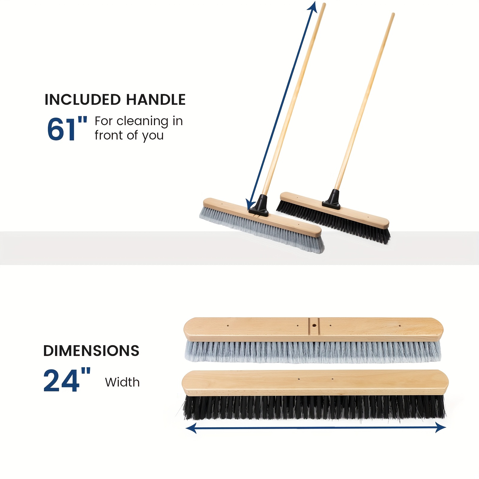 (Set Of 2) 24 Inch Smooth-Surface Push Broom Indoor And Outdoor for Sand, Saw Dust, Wood Shavings And Pet Hair In Garages, Warehouses, And Workshops